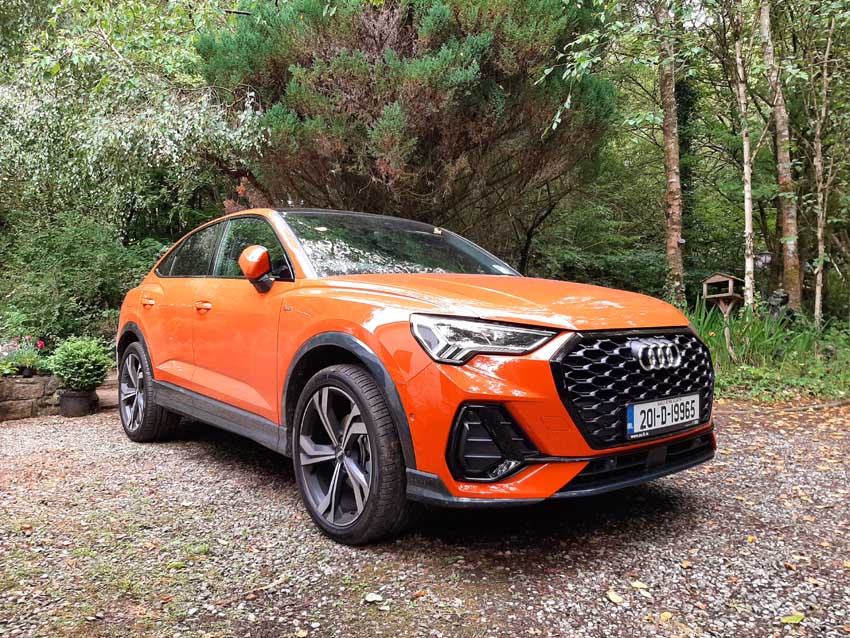 On the road? Lower than the standard Q3 the Sportback is more at home on the road than off exploring the flora and fauna of the countryside but it’ll cruise effortlessly around town and country without too much fuss. Good to drive the S-tronic automatic gearbox is deliciously smooth while the Audi “drive select” driving dynamics system allows you to change the characteristics of the car. On a mix of urban and rural roads, Audi reckons you will achieve 7.2 to 6.8 litres per 100km. Annual motor tax is €280 and the one-off Nox charge is €249.