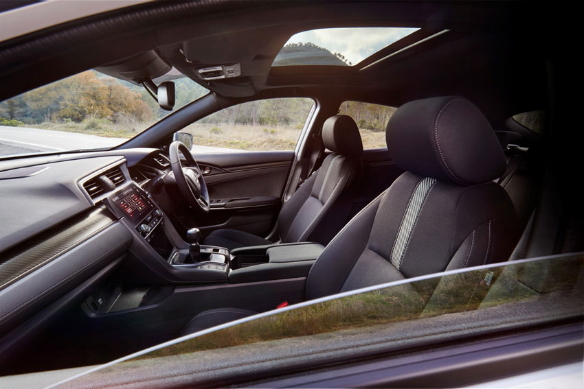 How safe? The new Civic is crammed with safety features and comes with Honda Sensing as standard which includes a Collision Mitigation Braking System this will actually bring the car to a stop if the system determines that a collision with a car in front is unavoidable. Lane Departure Warning will detect if the car is straying out of your lane while Road Departure Mitigation keeps you on the right road by determining if the car is veering off the road, Lane Keeping Assist System this helps to keep the car in the middle of the current lane, Adaptive Cruise Control allows the driver to set a desired speed and following distance from a vehicle detected ahead. Traffic Sign Recognition, automatically recognises road signs and displays the signs on the car’s dash, Intelligent Speed Assistance this system will adjust the vehicle speed to that indicated by the last road sign and finally Intelligent Adaptive Cruise Control is a very smart system that predicts and automatically reacts to other cars ‘cutting-in’ on your lane when on the Motorway.